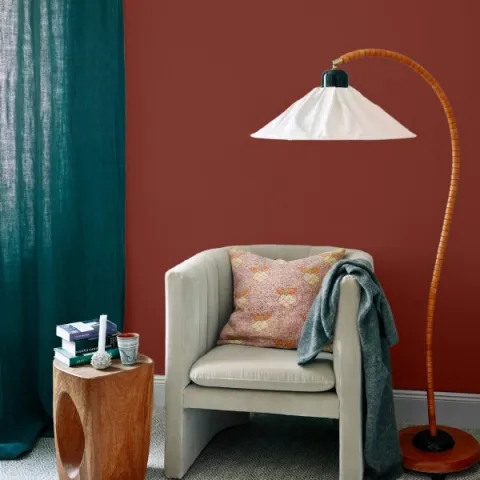Tack vare de energigivande egenskaperna är rött även en kulör som passar bra i arbetsrum och vardagsrum. Däremot ska du ta det lite försiktigt med för starka röda i sovrummet. Här är det bättre att välja en teracotta eller rosa nyans som skapar lugn. Som till exempel Familjelycka eller Palazzo.