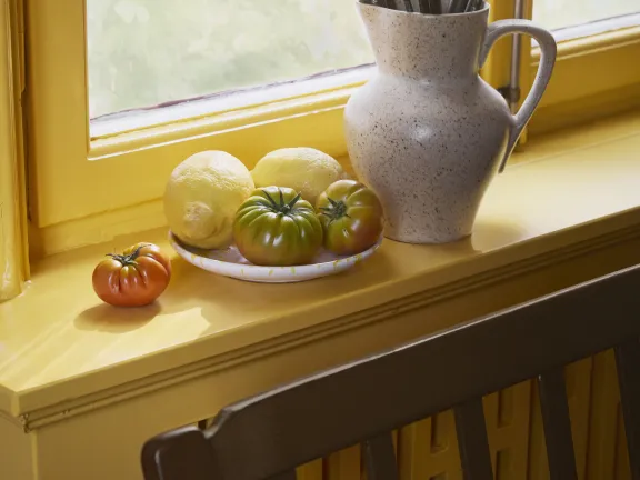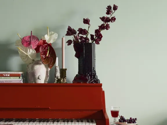 Grönt och lila kanske känns lite oväntat men de är faktiskt varandras bästisar, de ligger mitt emot varandra i färgcirkeln och lyfter fram det vackra i varandra. Testa själv att till exempel att måla in en detalj i Potager 977 i ett rum med Fermenterad 981. En kulörhit!
