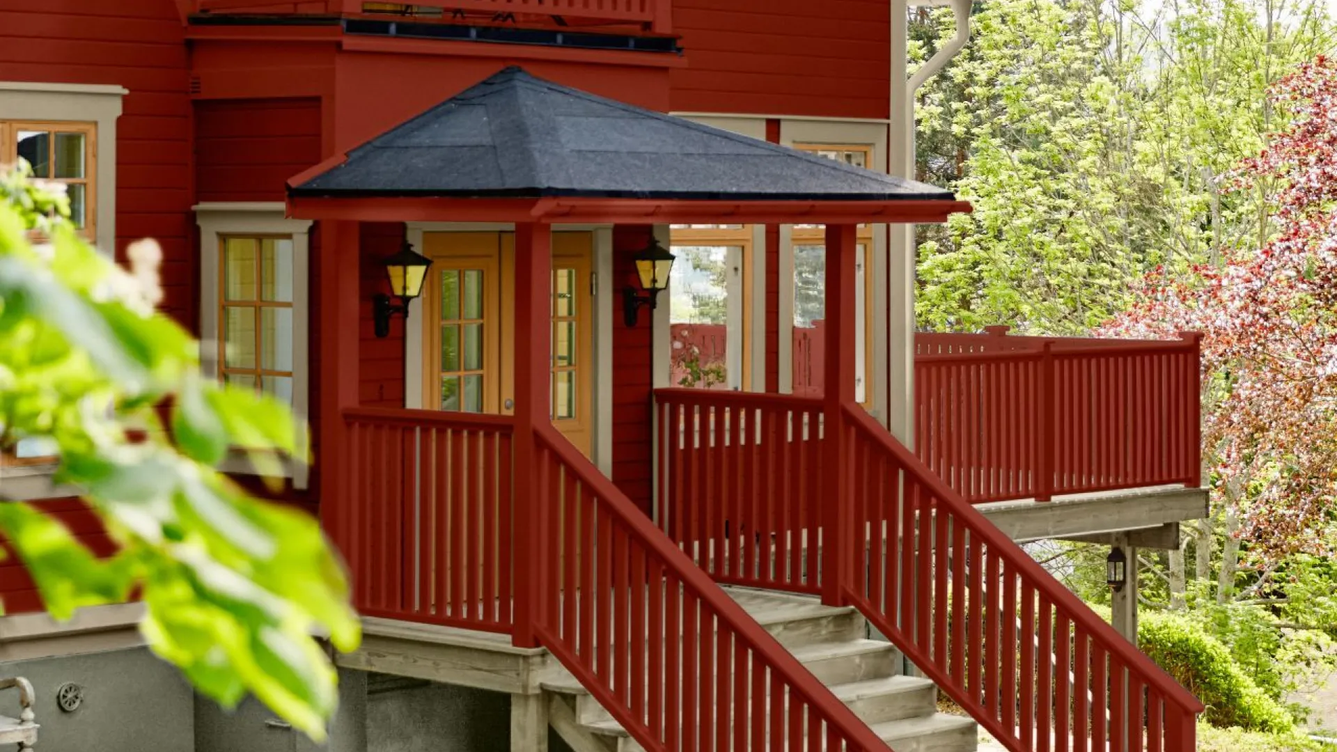 Har ditt hus detaljer som du gärna vill framhäva blir det vackert att måla dem i en kontrasterande kulör. Ju större kontrast du väljer desto större fokus hamnar på detaljerna och gör ditt hus mer originellt.