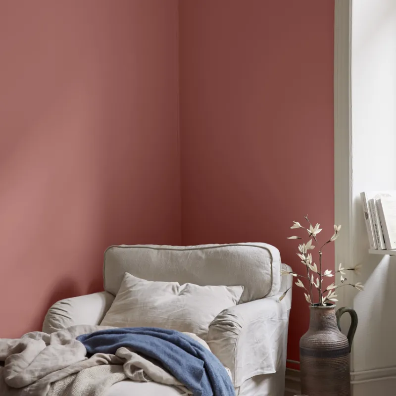 Färgsätt ditt hem med varma Dalagård 840! Denna vackra röda kulör ger en trivsam och härlig känsla i sovrum, vardagsrum och kök. Med hög kvalitet och enkel applicering är detta det perfekta valet för att förnya ditt hem. Måla rummets väggar och upplev den fantastiska effekten av Dalagård 840!