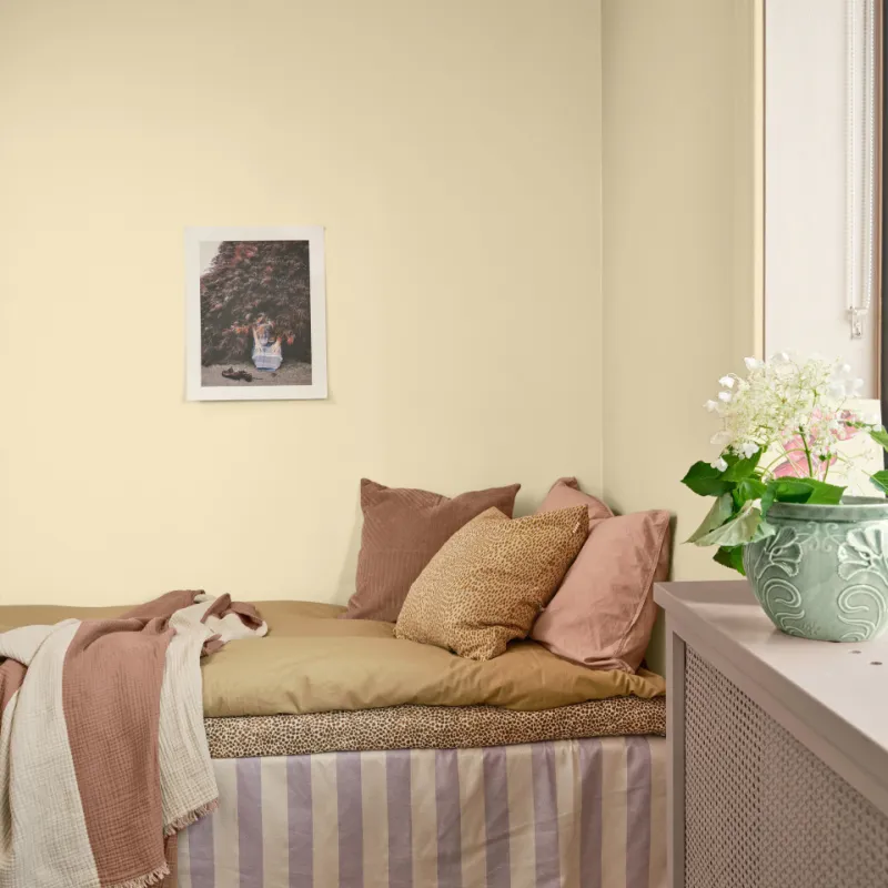 Korn 632 är en varm och inbjudande kulör som passar perfekt i sovrum, hall och kök. Med sin gula nyans skapar den en trivsam stämning och ger ditt hem en härlig atmosfär. Beckers Färg är stolta över att erbjuda denna färg till dig, så att du kan skapa ett hem som känns både personligt och välkomnande. Spana in Korn 632 och se själv hur den kan förvandla ditt hem!